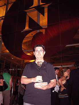 en Víctor M. Sànchez 'Channing' amb el trofeu en front del TNC